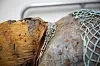 Under lokket var begge mumiene pakket i lintøy. Tøyet var en gang i tiden lys beige, men har blitt brunsort etter alle årene som har gått.