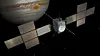 Dette bildet er tatt av en romsonde på et spennende oppdrag. Den skal besøke månene rundt Jupiter. Der finnes blant annet ismånen Europa, som kan ha et flytende hav under 30 kilometer med is.